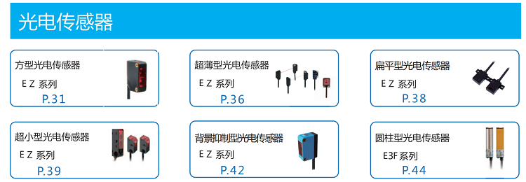方形紅外光電傳感器、方形紅光光電傳感器、超薄型漫反射光電開關(guān)、超薄型對(duì)射光電開關(guān)、扁平型光電傳感器、超小型光電傳感器、背景抑制型光電傳感器及圓柱形光電傳感器